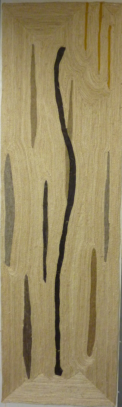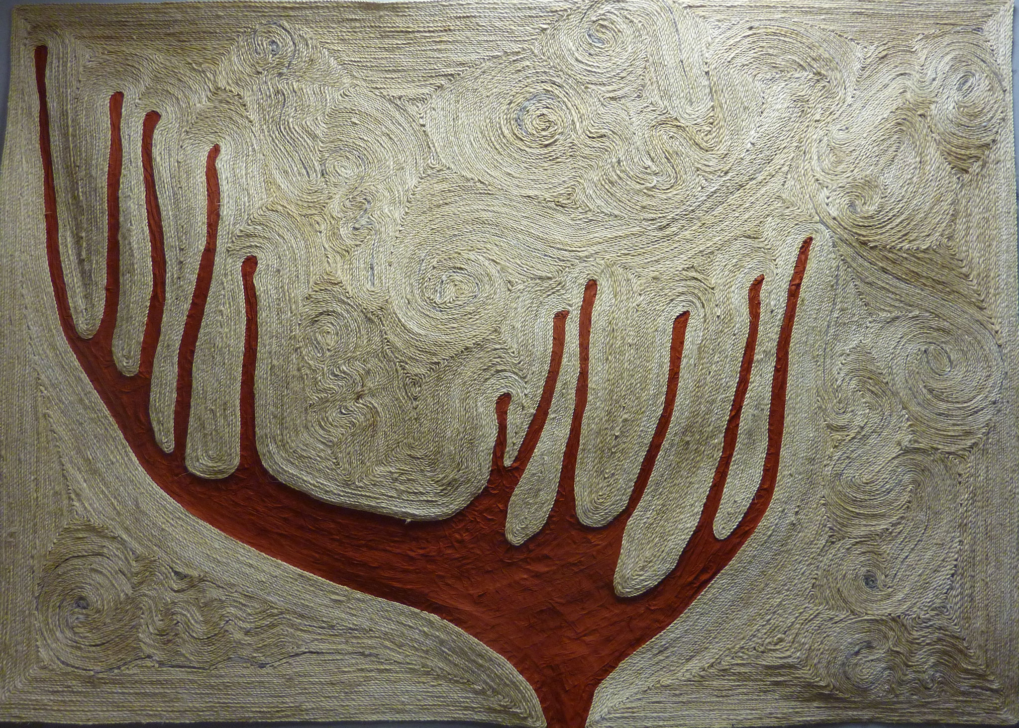 Ce travail est un pas de côté par rapport à la marqueterie de paille. Un changement de matériau entraîne un changement total de la méthode de travail. Le sisal utilisé ici se rapproche de celui qui était utilisé en Amérique du Sud pour confectionner les tapisseries d' Alexandre Calder.